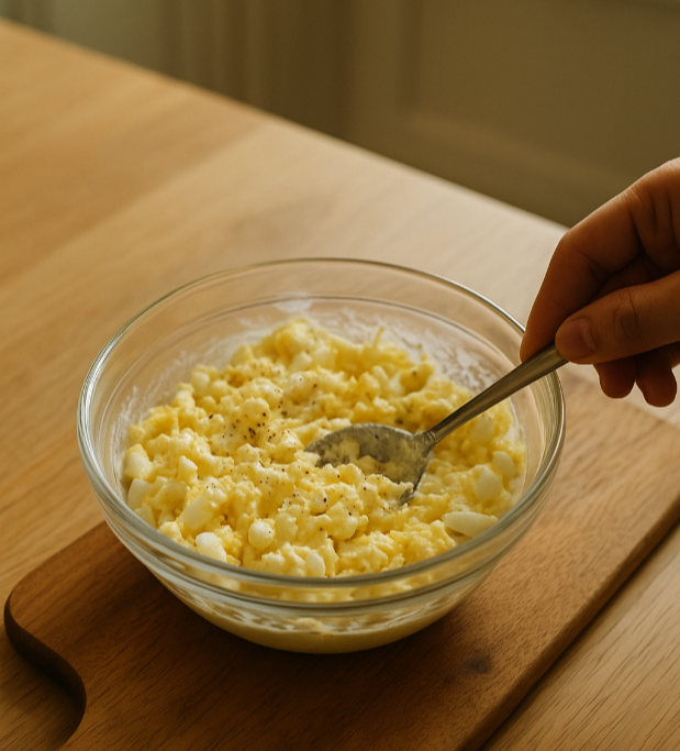 달걀을 포크나 스푼으로 잘게 으깬다.