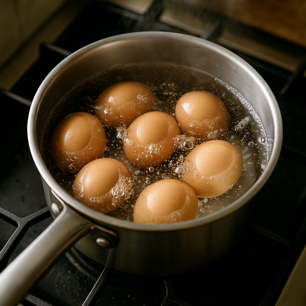 냄비에 달걀을 넣고 찬물부터 끓여 10분간 삶는다.